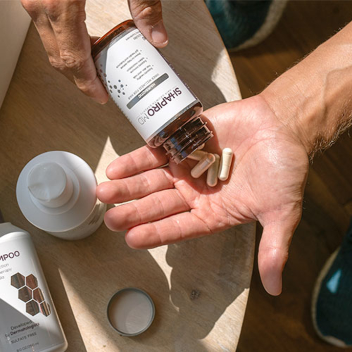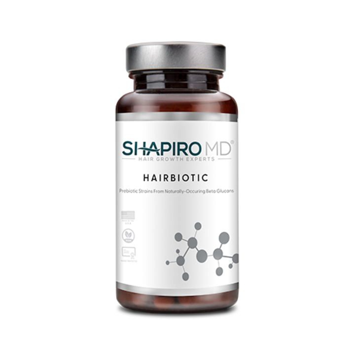 Our unique prebiotic beta-glucan Hairbiotic assists in the absorption of key nutrients for hair and whole body health. This Shapiro MD exclusive formula supports uptake of critical hair strength nutrients in the digestive system and beneficial vitamin conversion, providing a powerful boost to hair health and appearance.