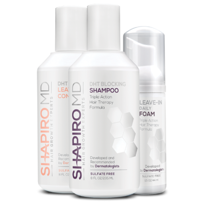 The Natural Leave-In Kit features some of our most powerful topical formulas - each of which contains three active ingredients shown to fight the effects of DHT, a hormone linked with hair loss. These topicals work together to protect and nourish your scalp and strands, so your hair looks thicker, fuller, and healthier overall.